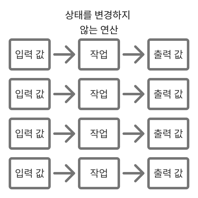 각 작업은 독립적이며 프로그램의 상태를 변화시키지 않습니다.