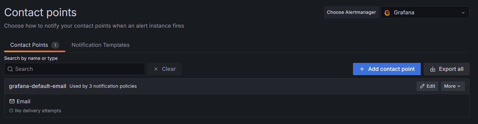 Grafana Alerting의 핵심 구성 요소로 Alert rules, Contact points, Notification policies가 존재합니다.