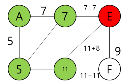 이제 E의 최단 경로를 확정할 수 있다.