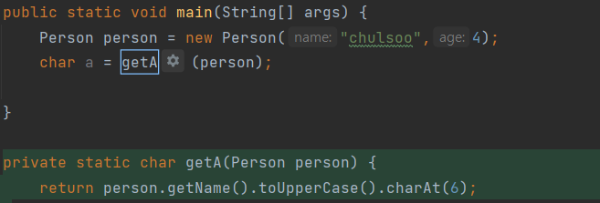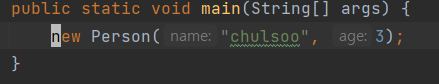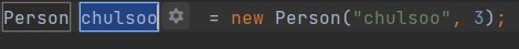 이것도 new Person("chulsoo",3); 이 문장만 입력하고 ctrl + Alt + v 단축키를 누르면 바로 생성할 수 있다.