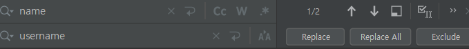 같은 파일 내부에 존재하는 이름을 모두 찾고 바꿀 이름을 입력한다.