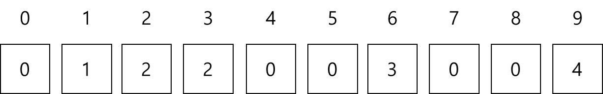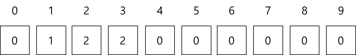 수열의 값을 인덱스로 사용하기 때문에 항상 입력받을 수 있는 수의 최댓값만큼의 길이를 가진 배열을 만들어야 한다