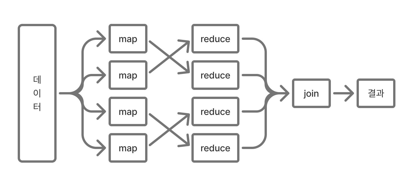 입력 데이터를 나누어 병렬 처리 하고 결과를 모은다는 점에서 fork/join 패턴과 유사합니다.